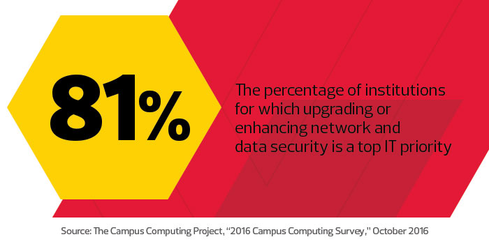 “The threats are just so sophisticated now, from highly morphing, complex viruses and malware to the advanced persistent threats from all the national and international players that are constantly probing the network for exploits,” Schattle says. “Email has also become a huge vector of attack for schools like us, whether from phishing emails or attachments that contain a payload for a virus, ransomware or a root kit that can go out, get installed and download information in the background. So nowadays, you’ve got to constantly work to cover any gaps into and out of your network.”