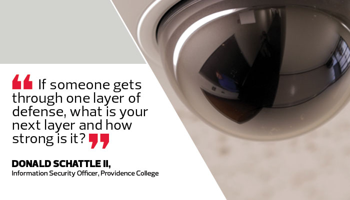 Moving to an end-to-end security approach often requires a great deal of resources and resolve. This type of across-the-board strategy is increasingly necessary, says Donald Schattle II, information security officer for Providence (R.I.) College, which has implemented a fully layered, end-to-end defense.